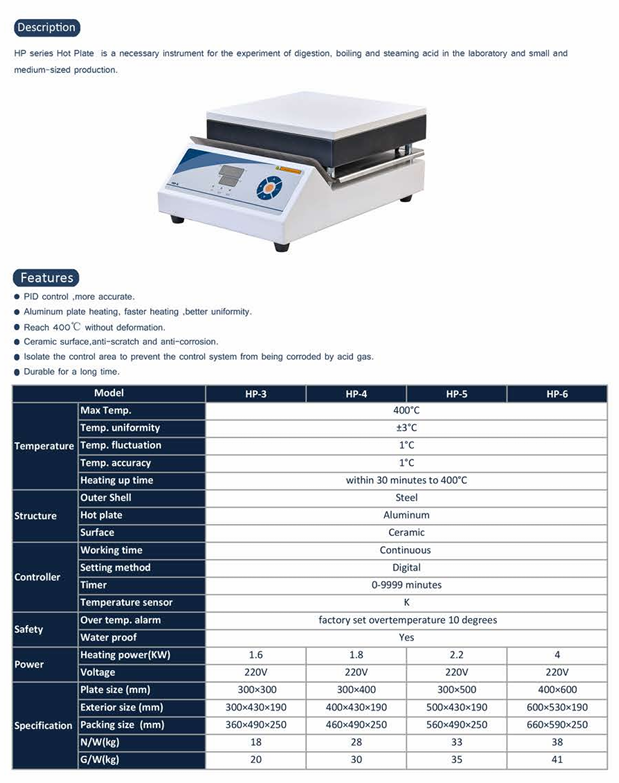HP series Hot Plate is a necessary instrument for the experiment of digestion, boiling and steaming acid in the laboratory and small and medium-sized production.