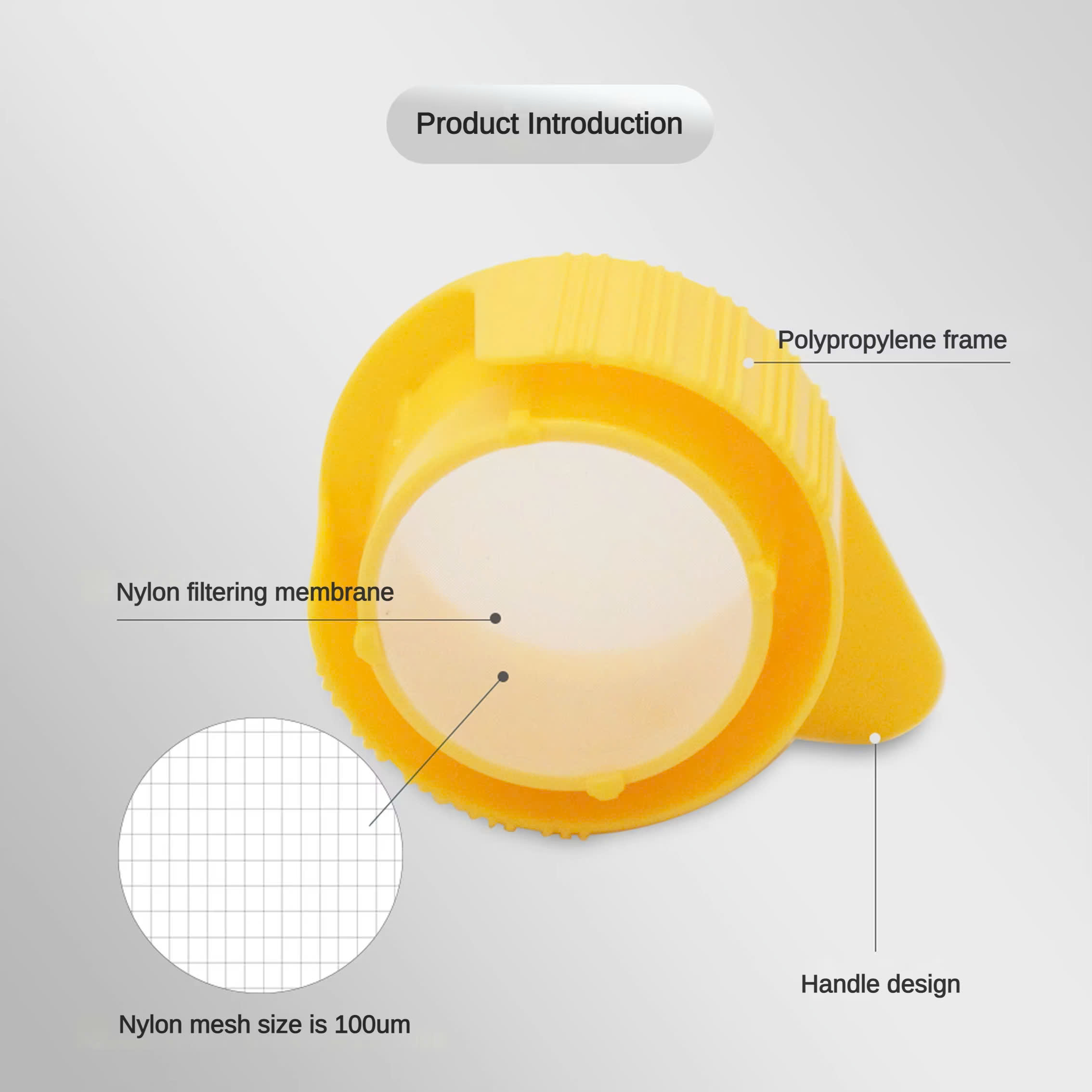 - Nylon membrane, with 3 membrane sizes, 40 µm, 70 µm and 100 µm, meet the requirements of filtration, separation of different cell types