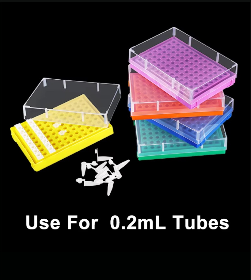 - Used with 0.2ml thin-walled tubes, eight-tube tubes, twelve-tube tubes or 96-well plates, with lids can also be used as storage racks or storage boxes