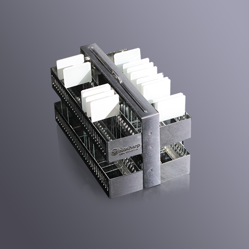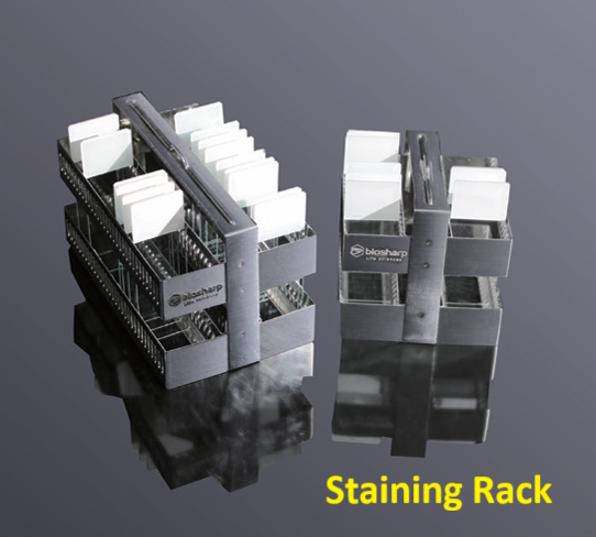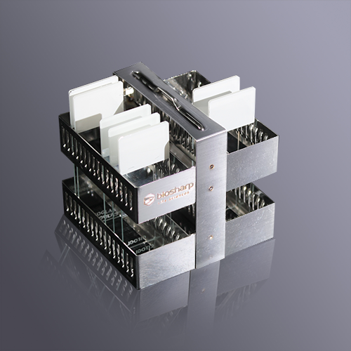 Giá nhuộm Biosharp được làm bằng thép không gỉ. Giá nhuộm có thể chứa tối đa 20-60
