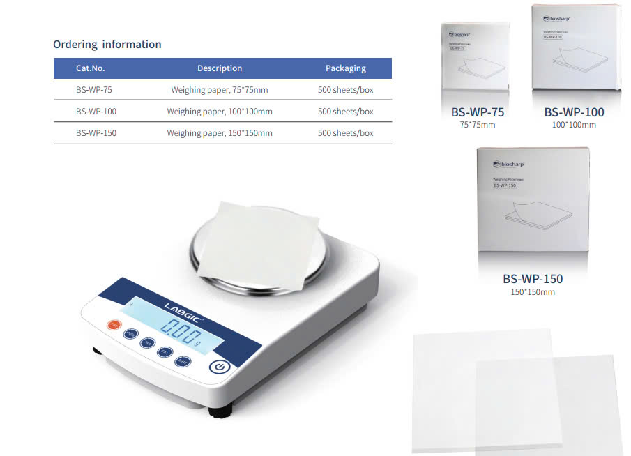 - Biosharp Weighing Paper is designed for analytical weighing with minimal influence on analytical results for weighing and transporting sample.
