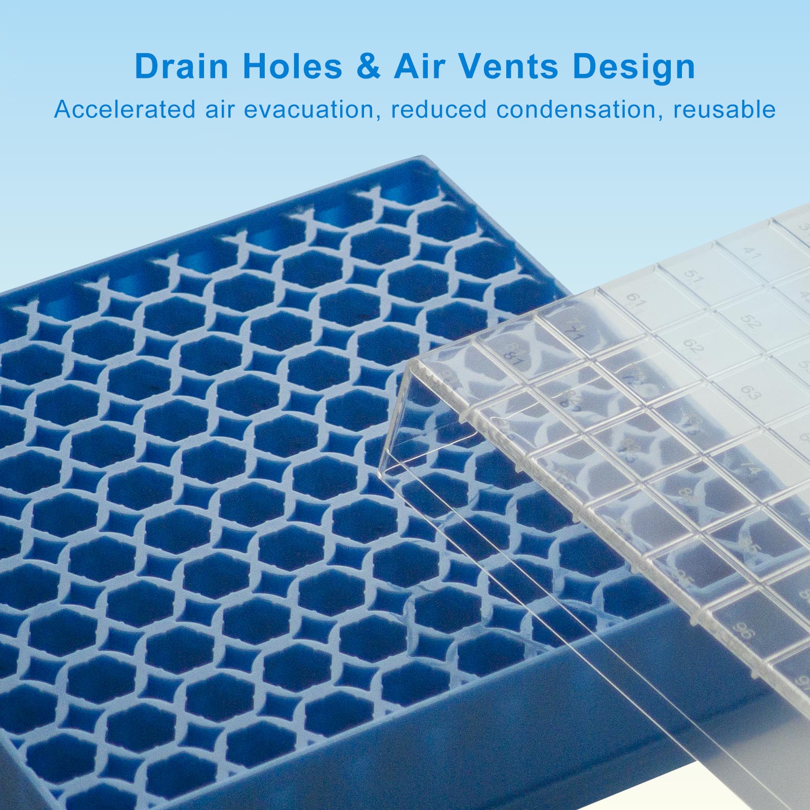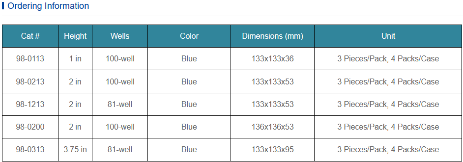 - 9x9 (81-well), or 10x10 (100-well) boxes available