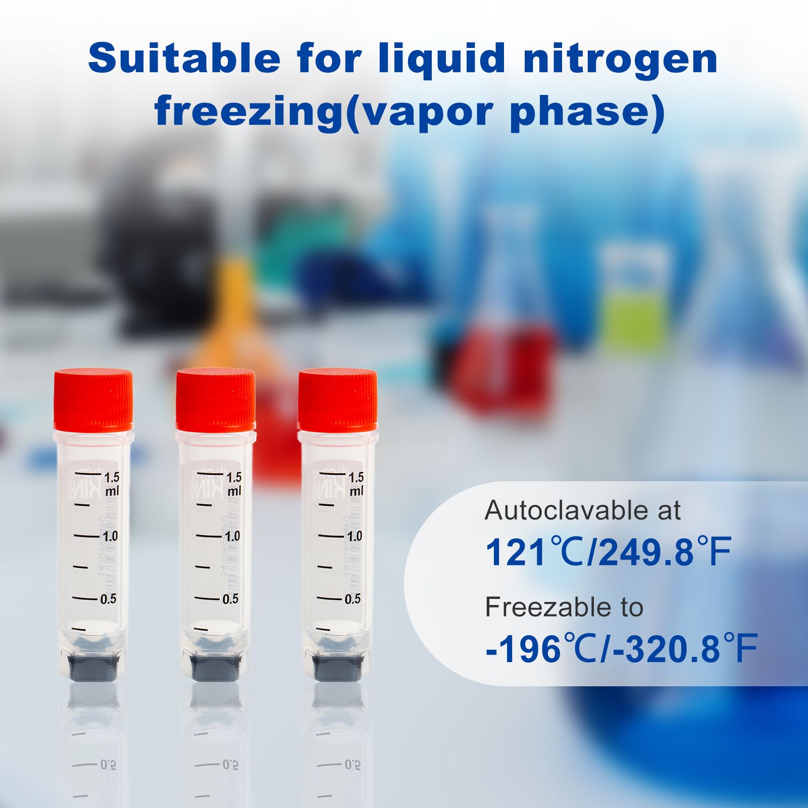 0.5ml 1.0ml 1.5ml, 2.0ml, 5.0ml, nhiều mã vạch, vô trùng, thiết kế không vòng chữ O, mã vạch 2D phù hợp cho lọ bảo quản nitơ lỏng đông lạnh.