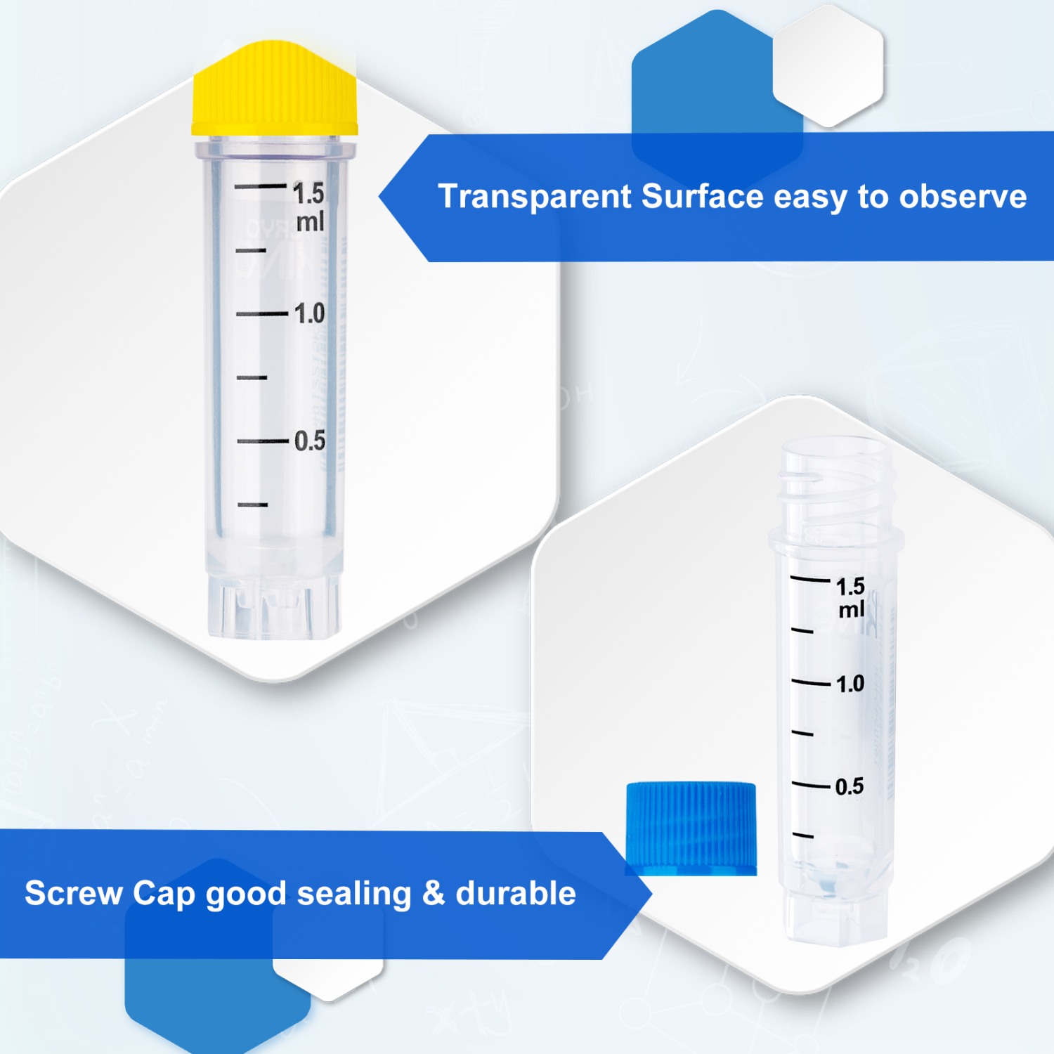 - Volume 1.5ml external thread, with side barcode.