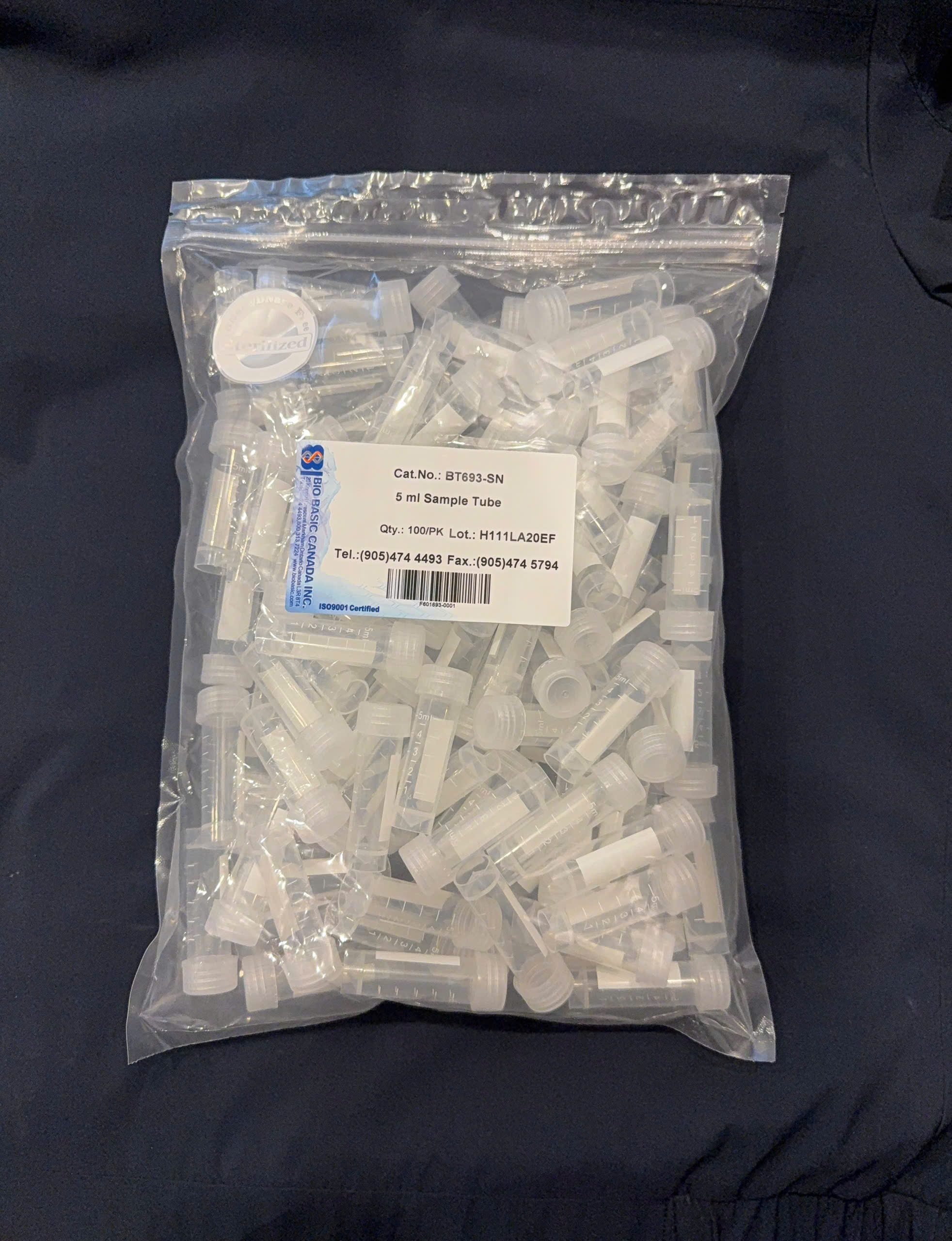 5ml Tube and Screw Cap, Natural, Polypropylene, Sterile, 100/Bag