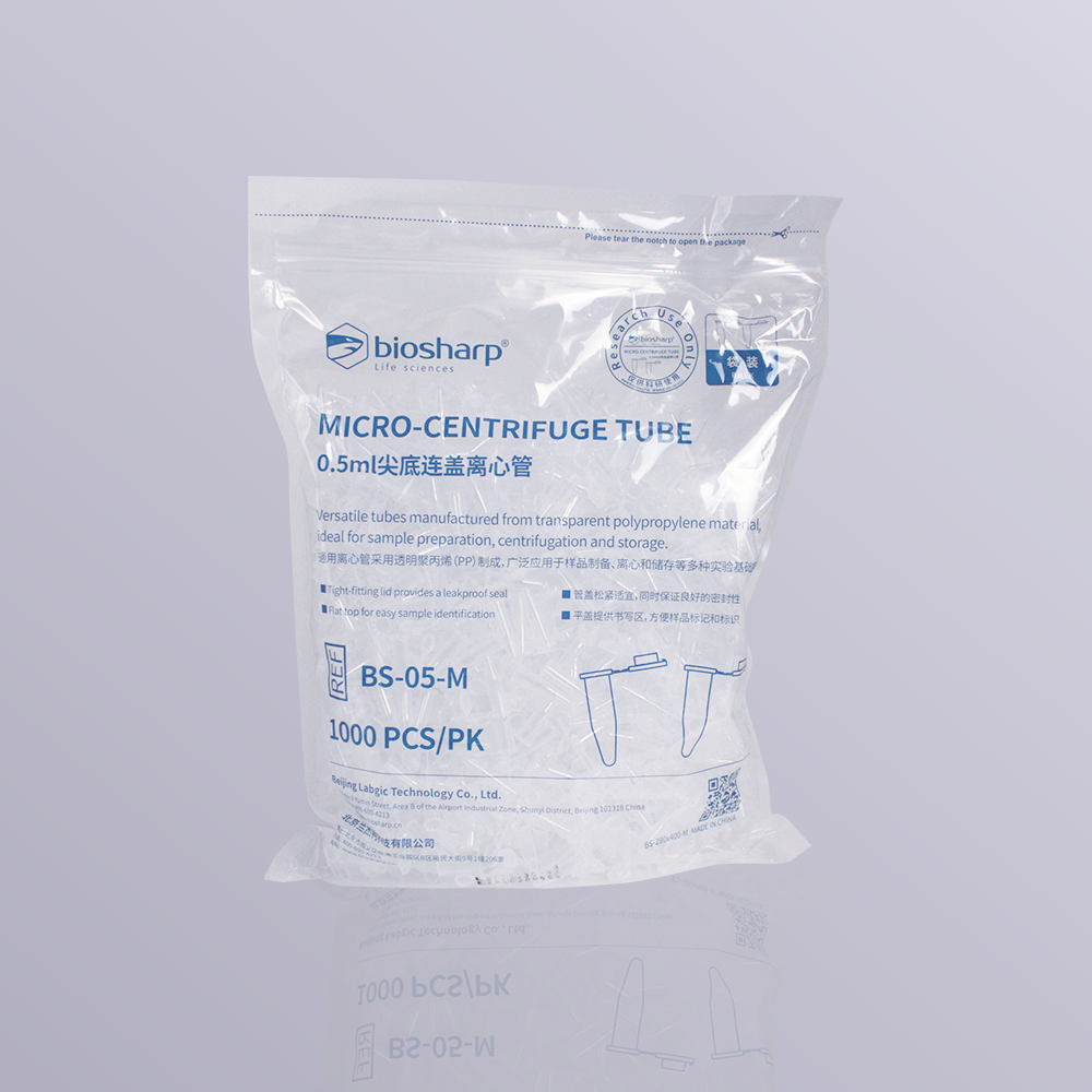 Biosharp Micro-centrifuge Tubes are made of transparent polypropylene material. Micro-centrifuge tubes are available in a variety of volumes. Mainly used for sample storage and centrifugation. All tubes feature frosted writing surfaces on the cap and side for smear resistant labeling.